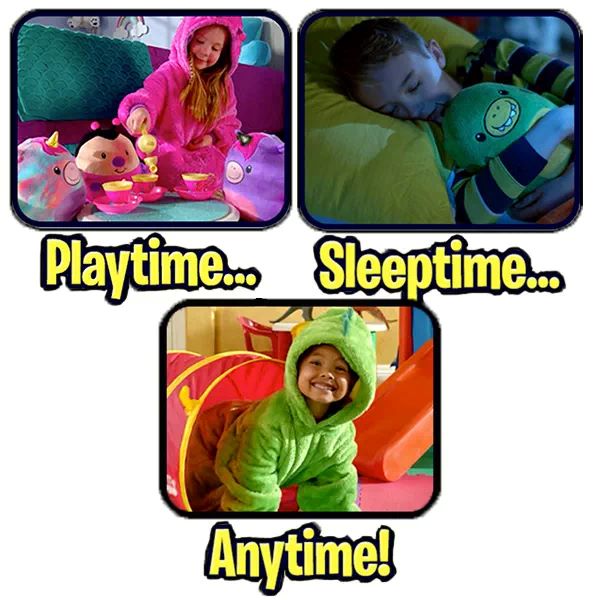 Když je čas jít spát, mikina se snadno promění zpět v plyšového mazlíčka. Je to stejně snadné jako napočítat do tří. PILLOWPET je dokonalým společníkem vašeho dítěte pro spánek, filmové večery a mazlení. Lze jej použít také jako polštář, na cesty nebo pro příjemné zachumlání v posteli.
