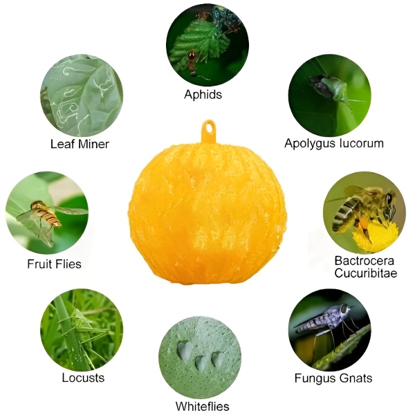 Udržujte své zahrady, skleníky a potravinářské rostliny bez otravného hmyzu pomocí našich závěsných kuliček s lepkavou pastí na mouchy (6 ks). Tyto superlepivé žluté kuličky přitahují a zachycují různé létající a lezoucí brouky. Jsou ideální pro venkovní i vnitřní použití a jsou účinné v kuchyních, domácnostech, restauracích, potravinářských závodech, nemocnicích, obytných domech, zoologických zahradách a dalších zařízeních, což z nich činí univerzální řešení pro boj se škůdci.
