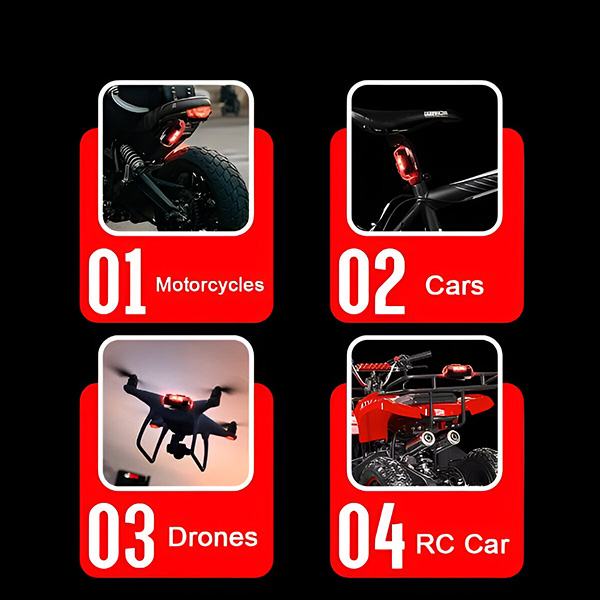 🔧 Montáž během několika sekund – není potřeba žádné nářadí – upevňuje se pomocí suchých zipů nebo gumových kroužků, hodí se na auta, motocykly, jízdní kola, drony, helmy a batohy.