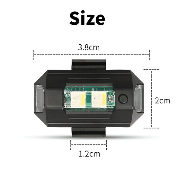 📏 Kompaktní a lehké – 3,8 x 2 cm, kryt z ABS, v balení sada 2 světel se suchými zipy, gumovými kroužky a USB nabíjecím kabelem.